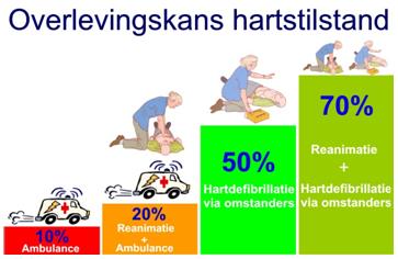 Om met de deur in huis te vallen: de overlevingskans bij hartstilstand verdubbelt wanneer een omstaander onmiddellijk van start gaat met reanimatie. Heb je daarnaast ook nog toegang tot een (openbaar) AED toestel (automatische externe defibrillator) waar gebruik van wordt gemaakt, is er 70% kans dat het slachtoffer het haalt.